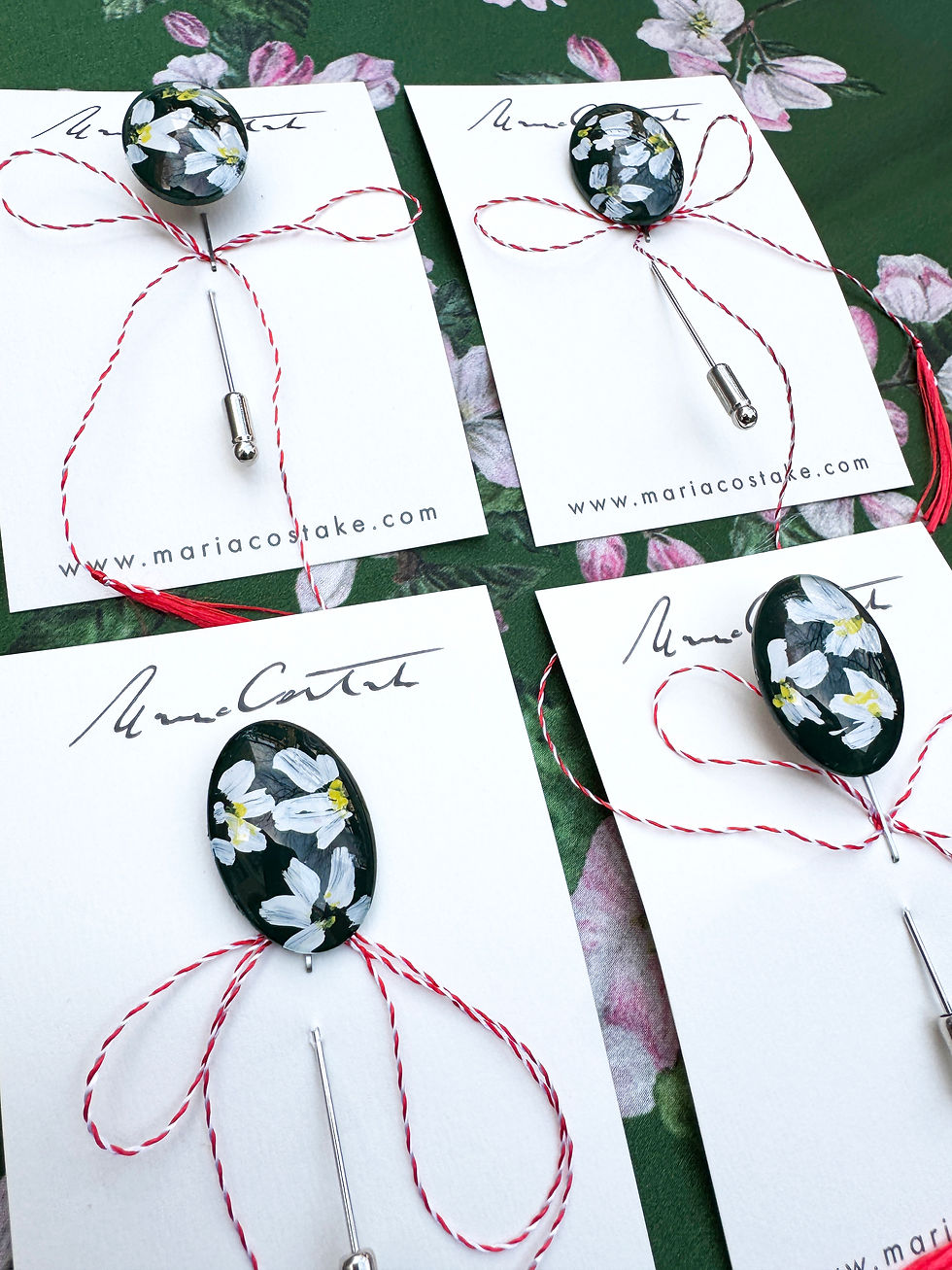 Fiecare brosa este pictata manual si este unicat. Brosele au fost realizate intr-o serie limitata, pastrandu-se modelul, culoarea si compozitia, fara sa existe doua martisoare identice.